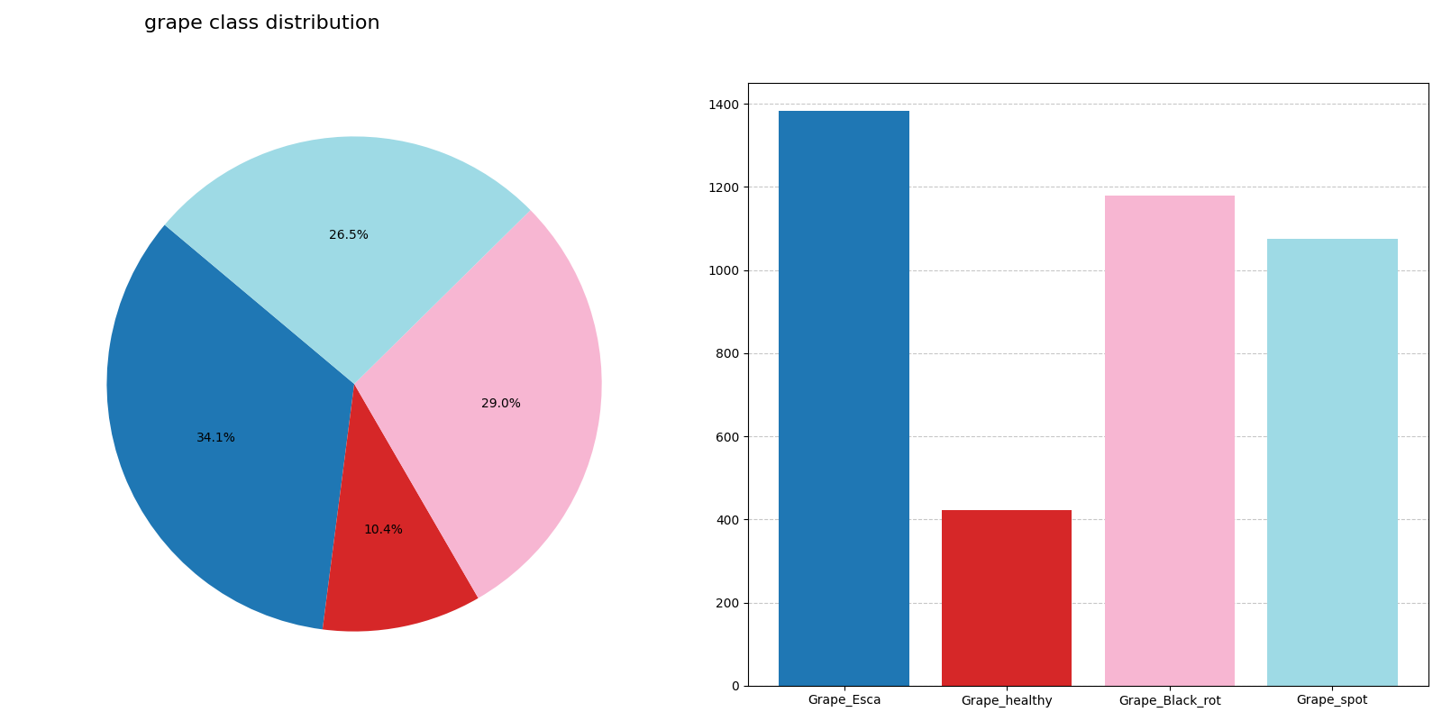 - 사과와 포도 클래스별 이미지 분포를 파이 차트와 막대 그래프로 시각화